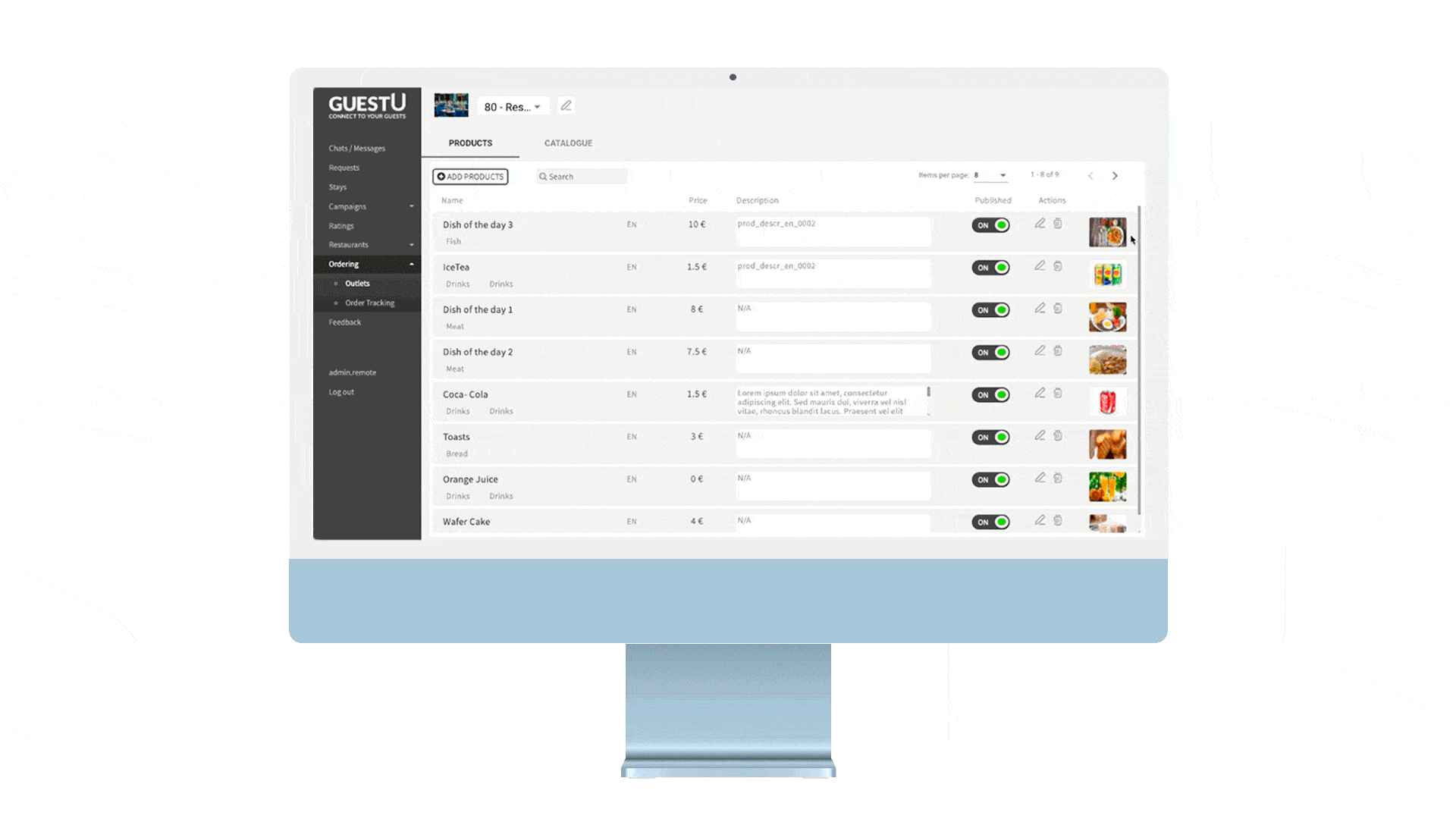 • Use the App backoffice to add images and translations, and to define how the items are organized and presented to the guests;