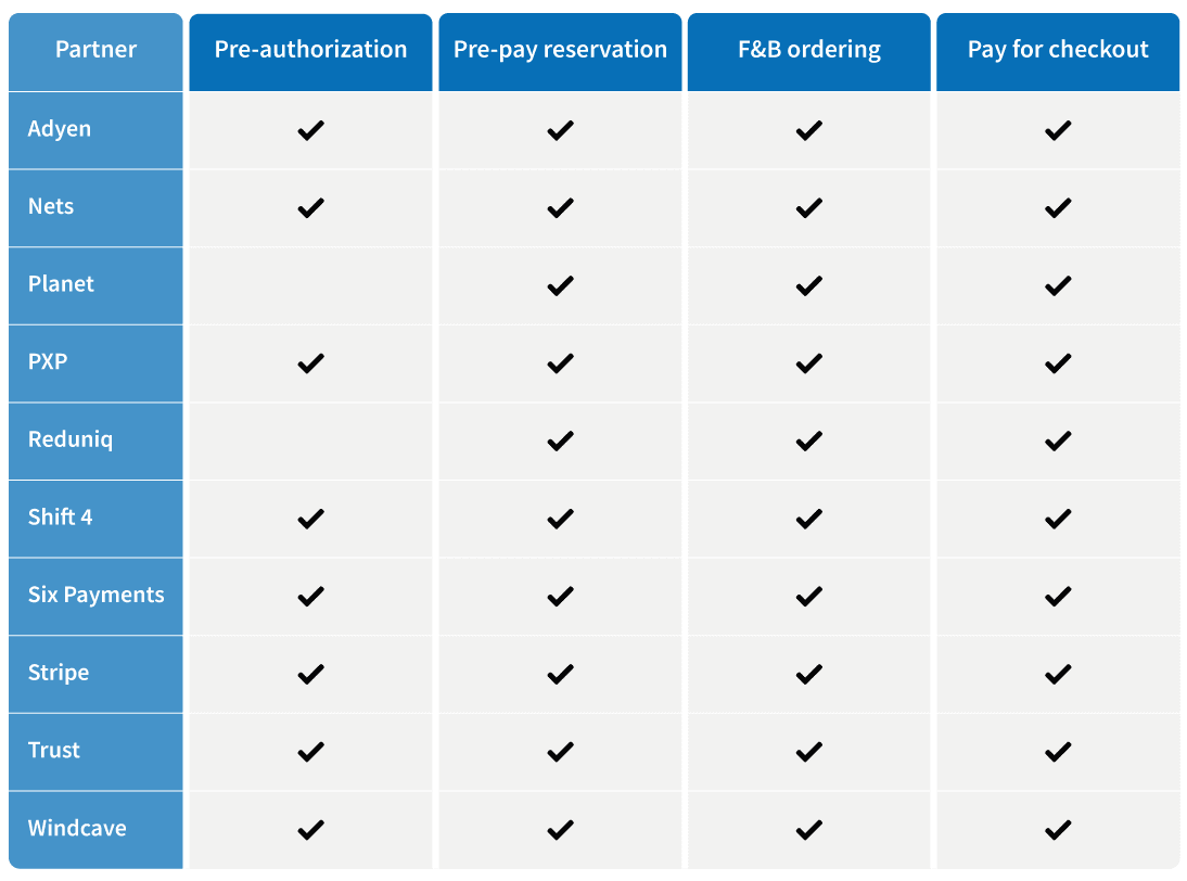 We have established partnerships with industry-leading providers to support integrations, covering every stage of the guest journey. As part of our ongoing commitment to enhancing our solutions, we are continually adding new partners as part of our product development roadmap.
