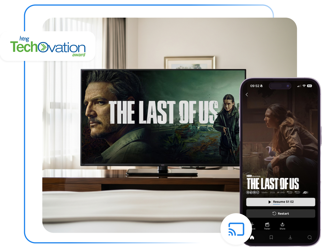 Secure, private, and effortless streaming for guests. Simple, centralized management for you. Compatible with any Wi-Fi network or TV.