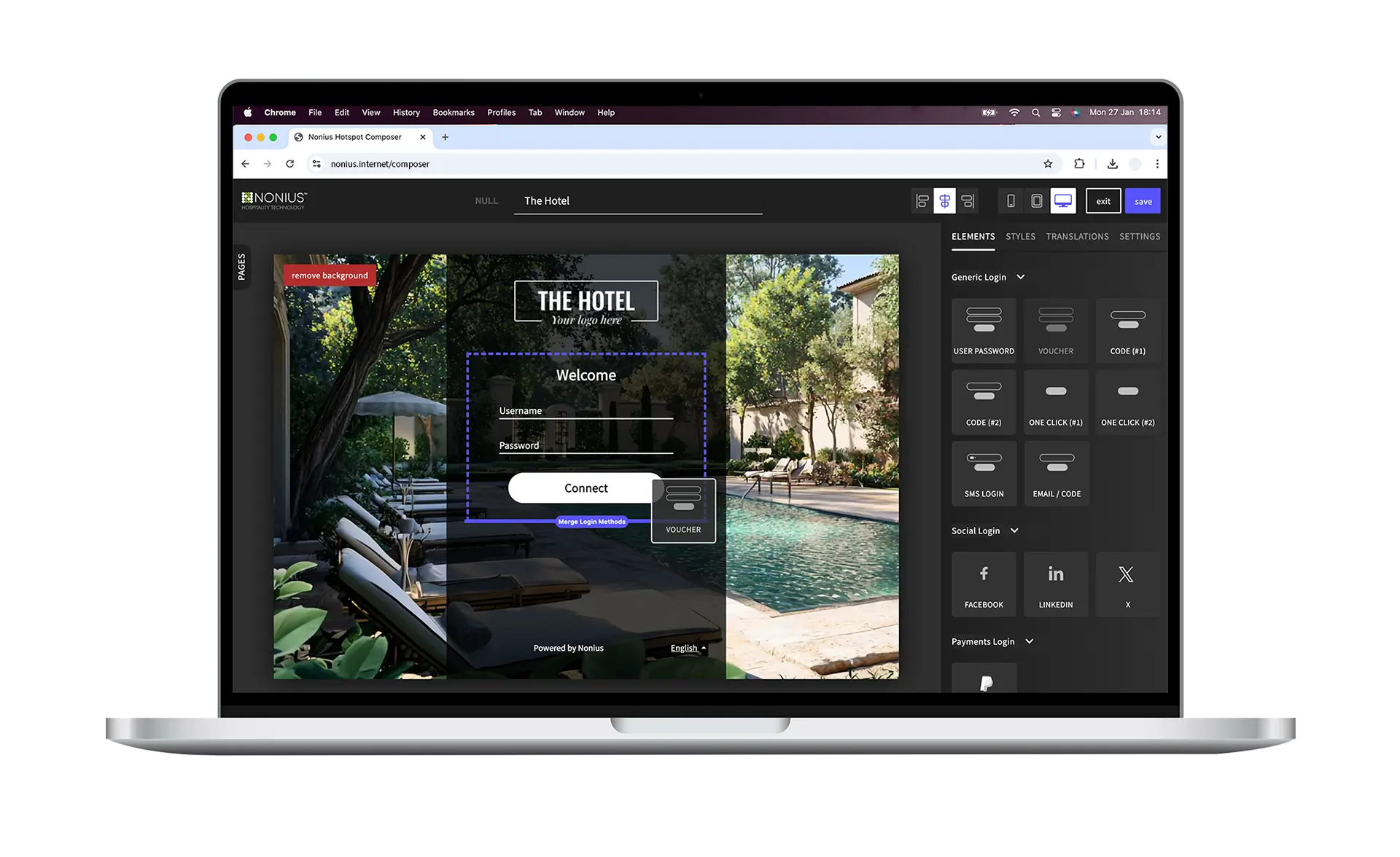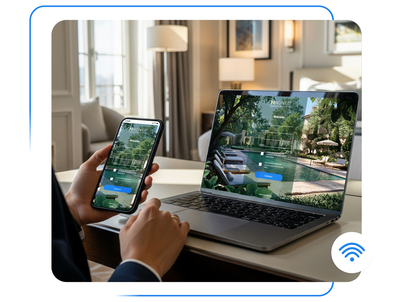 Yes, it’s part of a fully integrated ecosystem. Our Guest Wi-Fi solution seamlessly integrates with our other products like Nonius TV+ (for displaying sign-in codes on TV screens) and Nonius Cast. This creates a cohesive, hassle-free technology experience for your guests across multiple touchpoints in their room and throughout the hotel.