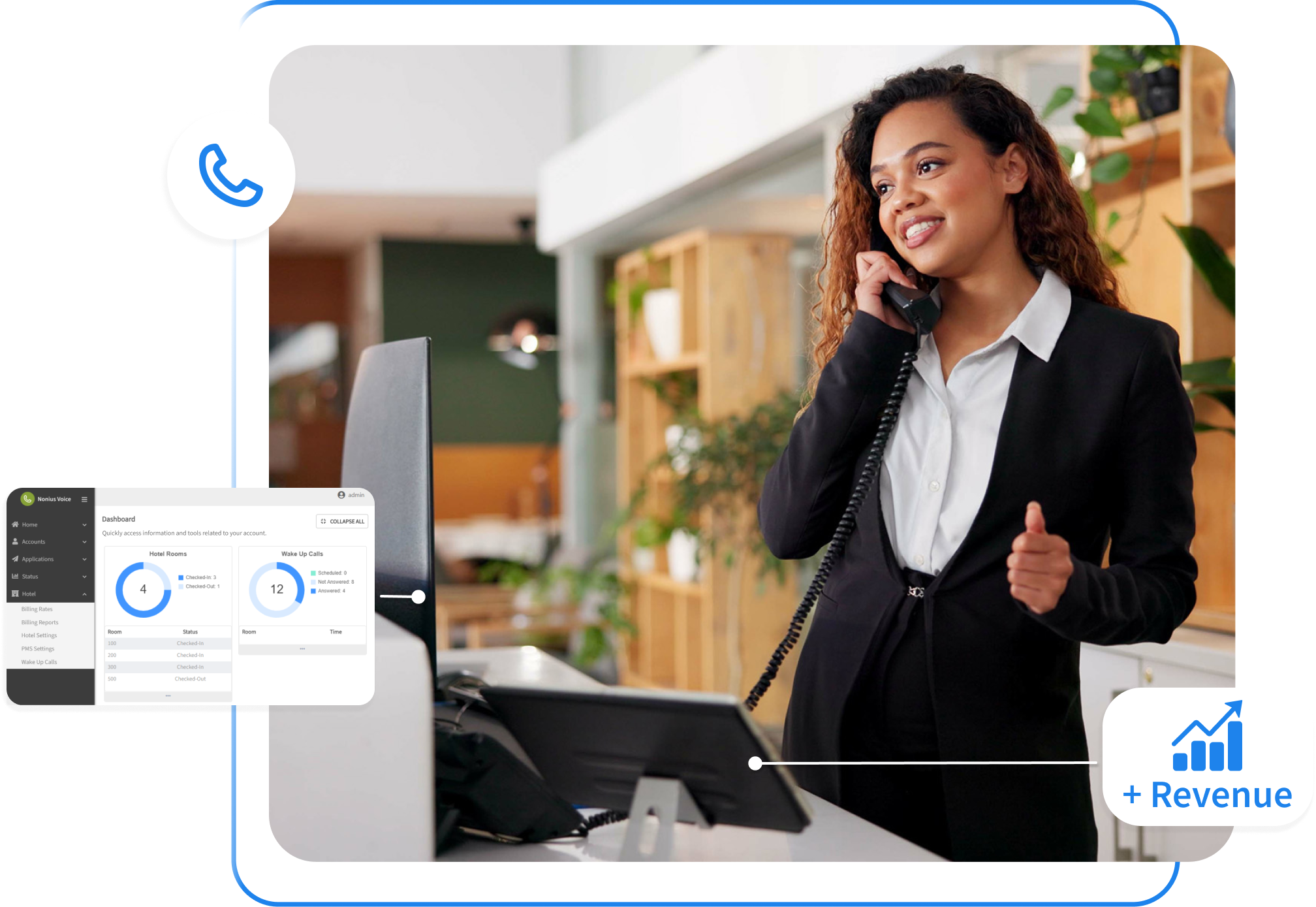 Take full control of your hotel’s communications. Our secure, SSO-enabled backoffice simplifies everything—from managing guest calls and billing to updating room status. We streamline administrative tasks so your team can put its focus where it belongs: on creating an exceptional guest experience.