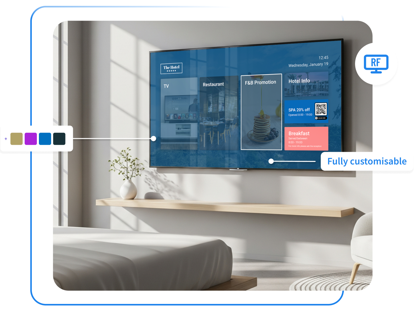 The Nonius TV RF platform is designed to be more than just a channel guide – it’s a marketing tool that can directly boost your revenue. For exemple, you can promote your menu or display a QR code on screen that allows guests to instantly interact using their own phones.