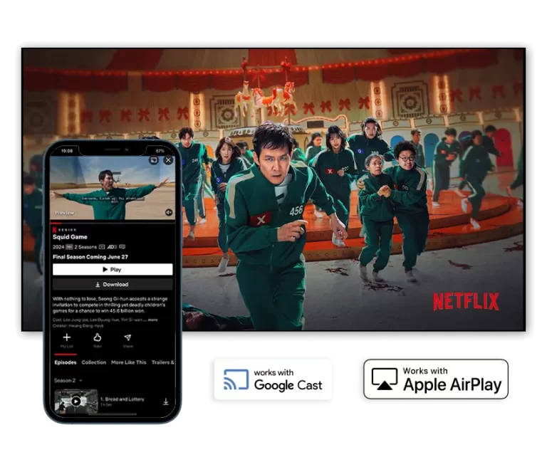 Let your guests take full control of their in-room entertainment with seamless casting. With built-in Google Cast and Apple AirPlay support, they can instantly stream movies, shows, music, and more, straight from their devices to the TV.