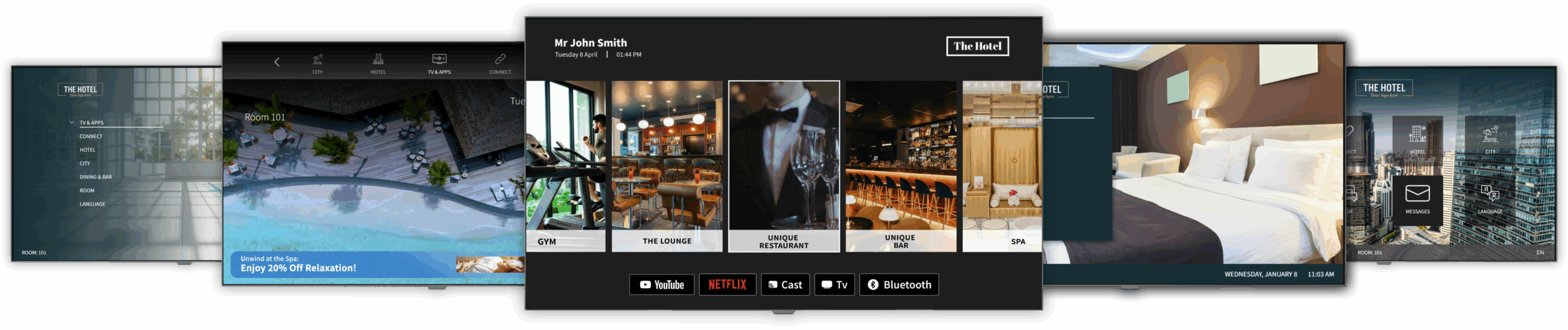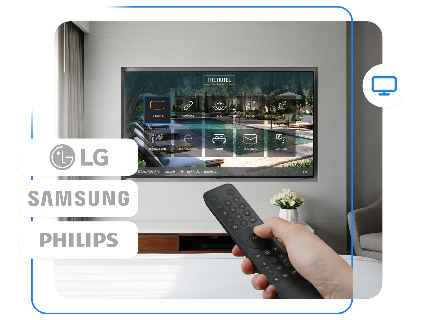 Enhance guest convenience by integrating services like room service requests, billing information, and local attractions directly into the TV interface.