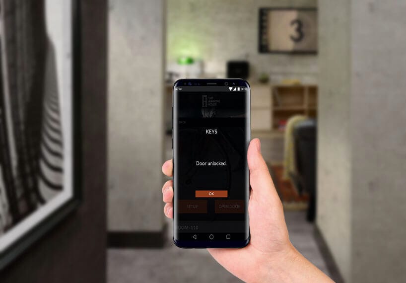 When the guest performs the online check-in, he receives a notification. He may now avoid check-in queue and go directly to the assigned room, as the Hotel app has a built-in mobile key feature, thanks to Dormakaba‘s Bluetooth integration with the Nonius product.