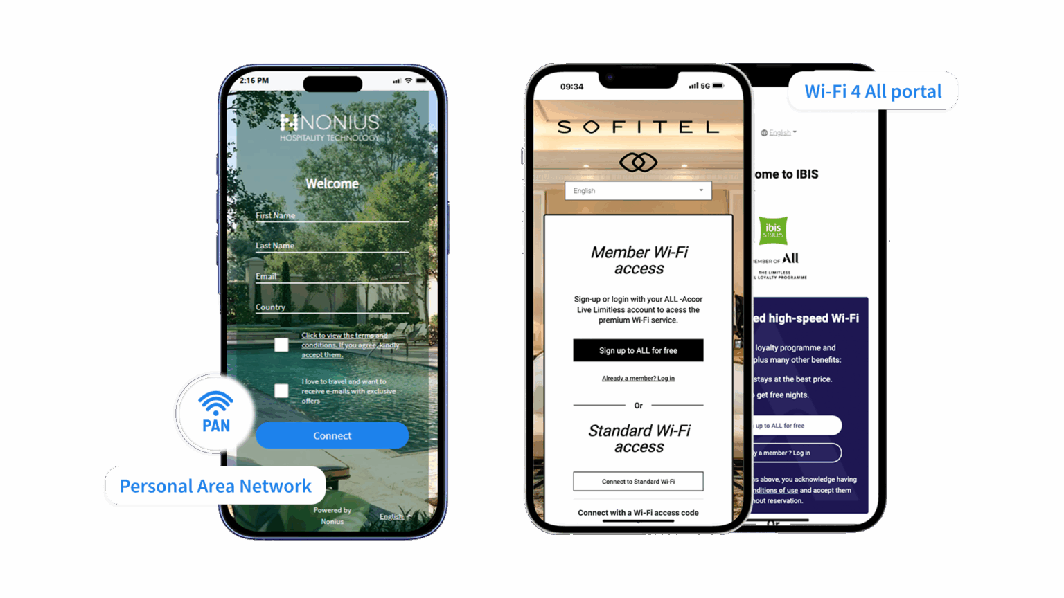 - Também disponibilizamos o portal Accor’s Wi-Fi 4 All, proporcionando conectividade instantânea, integração com o programa de fidelização e análises acionáveis, transformando um simples login numa ferramenta de comunicação com o hóspede.