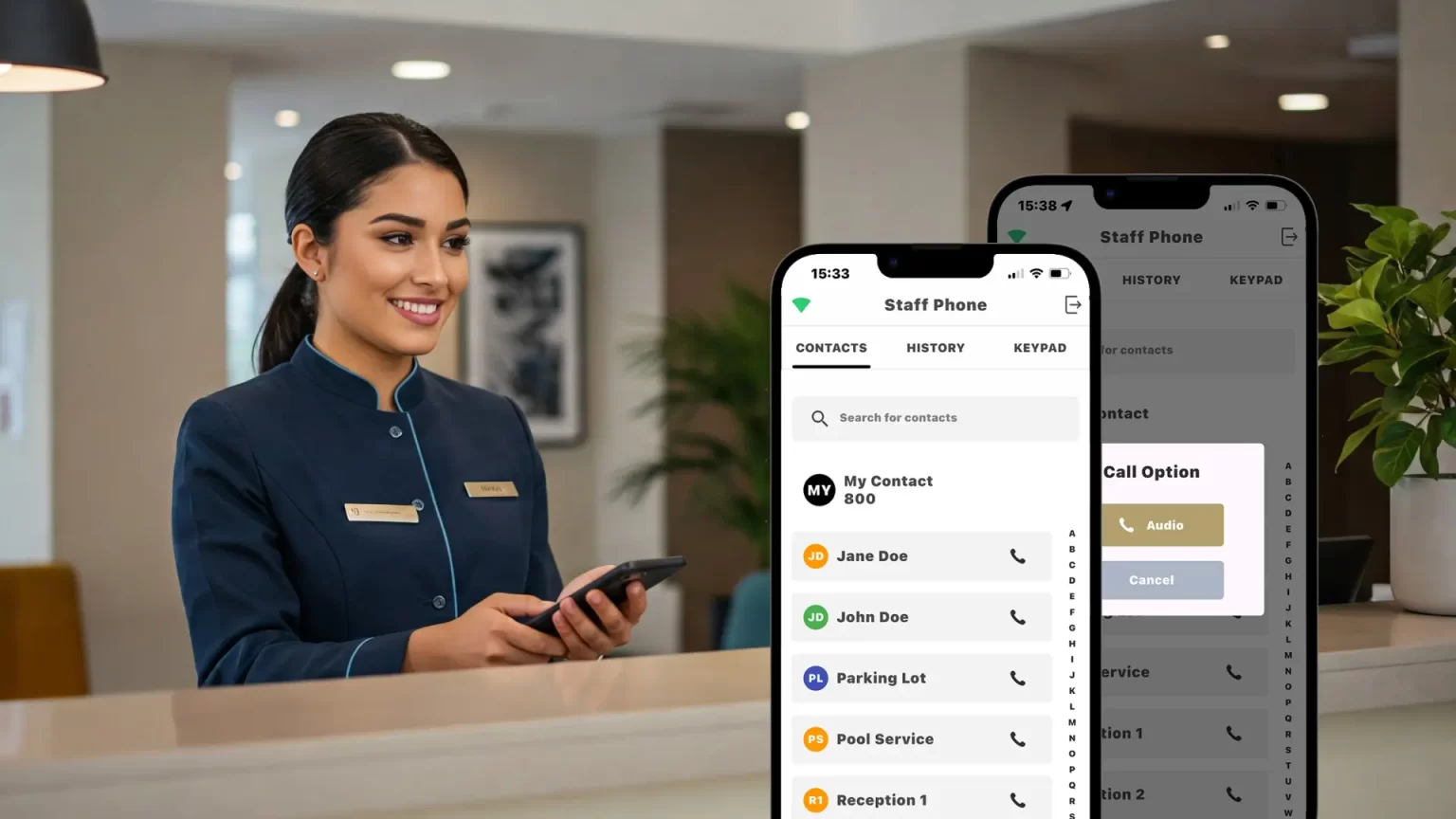 Melhorámos o Nonius Voice Cloud PBX com um softphone para o staff com autenticação Single Sign-On. A equipa inicia sessão de forma instantânea, aumentando a segurança e eficiência, enquanto os hotéis beneficiam de um sistema de comunicações robusto e os hóspedes recebem um serviço mais rápido e fiável.